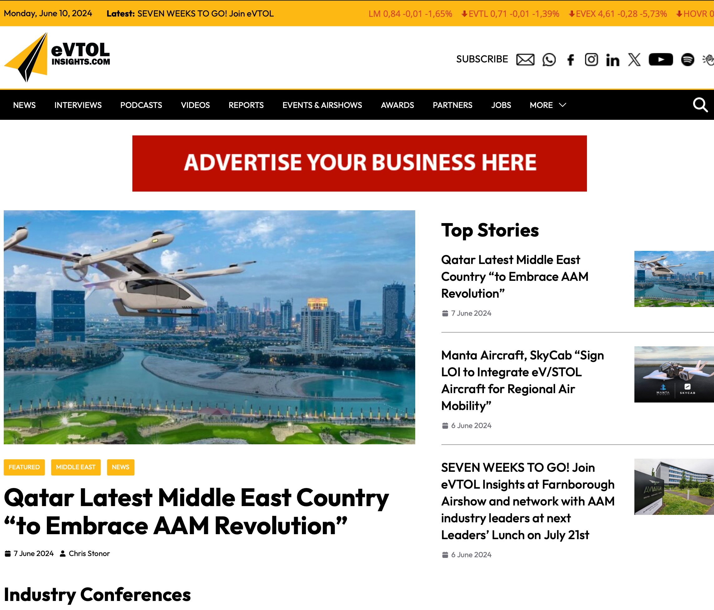 We offer home page branding through an array of banner advertisements; an option to sponsor weekly podcasts and/or the Wednesday and Friday newsletters; as well as our quarterly Special Reports. eVTOL Insights latest release revealing the leading CTOs in the AAM industry will be published later this month.