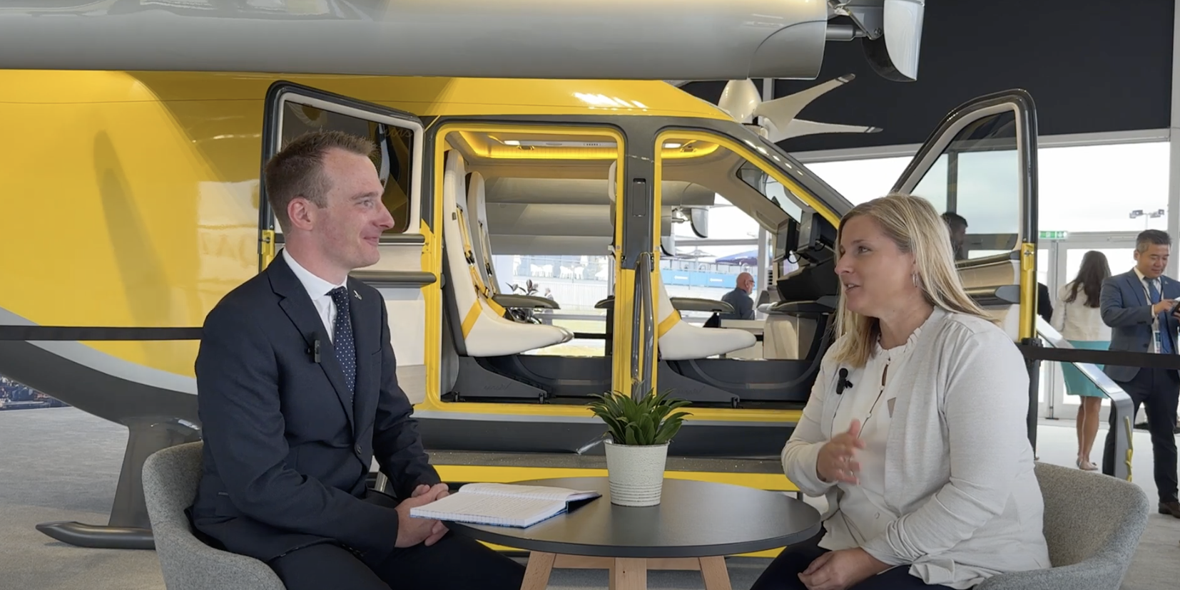 Main image: eVTOL Insights’ Jason Pritchard talks to Wisk’s Chief Marketing and People Officer, Becky Tanner, at last year’s Farnborough Air Show.