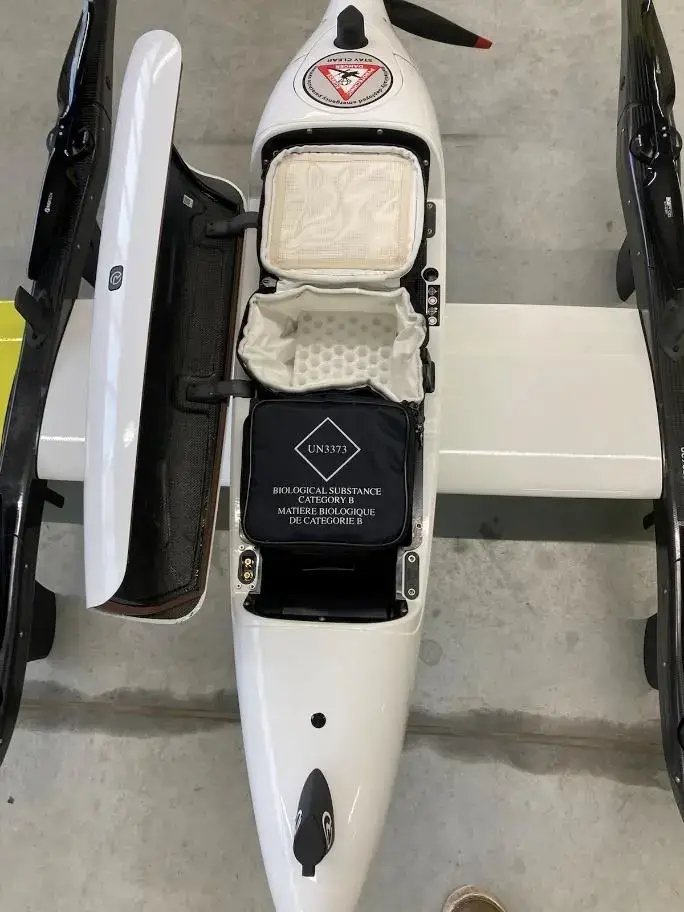 The RigiTech Eiger, distinguished by its yellow wings, has a payload capacity of 3 kgms within a specially designed medical bag compartment, capable of accommodating up to 180 blood tubes, a minimum of 3 blood bags, or various other medications. With a flight range of approximately 100 kms, the Eiger has an onboard parachute system and expands the Medical Drone Service operational capabilities, “facilitating flight over densely populated areas and supporting the initiative’s expansion efforts,” continues the release.