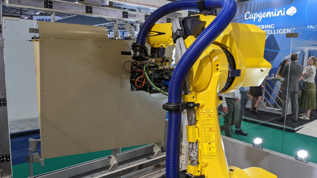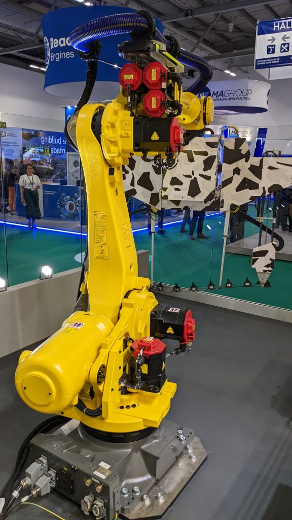 One of these companies is FANUC, the Japanese robotics and automation specialist. It brought a selection of its automated solutions to the Farnborough Air Show last month, with the distinctive yellow stand showing examples of its robots working on drilling and welding applications.