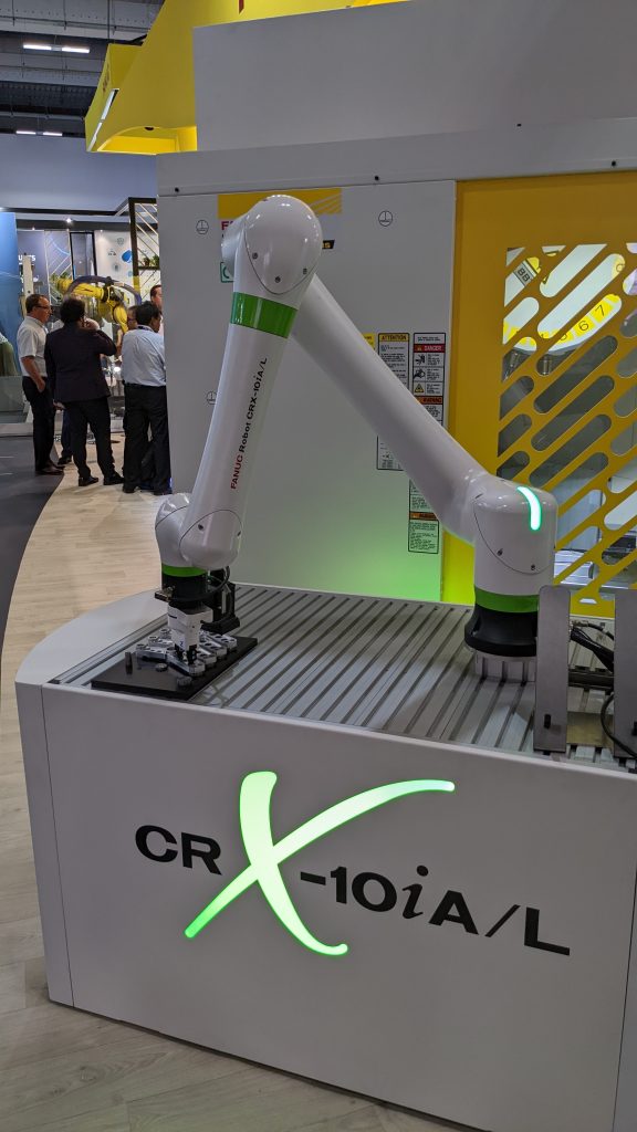 “But also on display are our collaborative robots (cobots). They are built with softer areas of contact and operate at a slower pace. When a worker comes into contact with a cobot, the cobot will immediately stop, which allows for safe co-working.