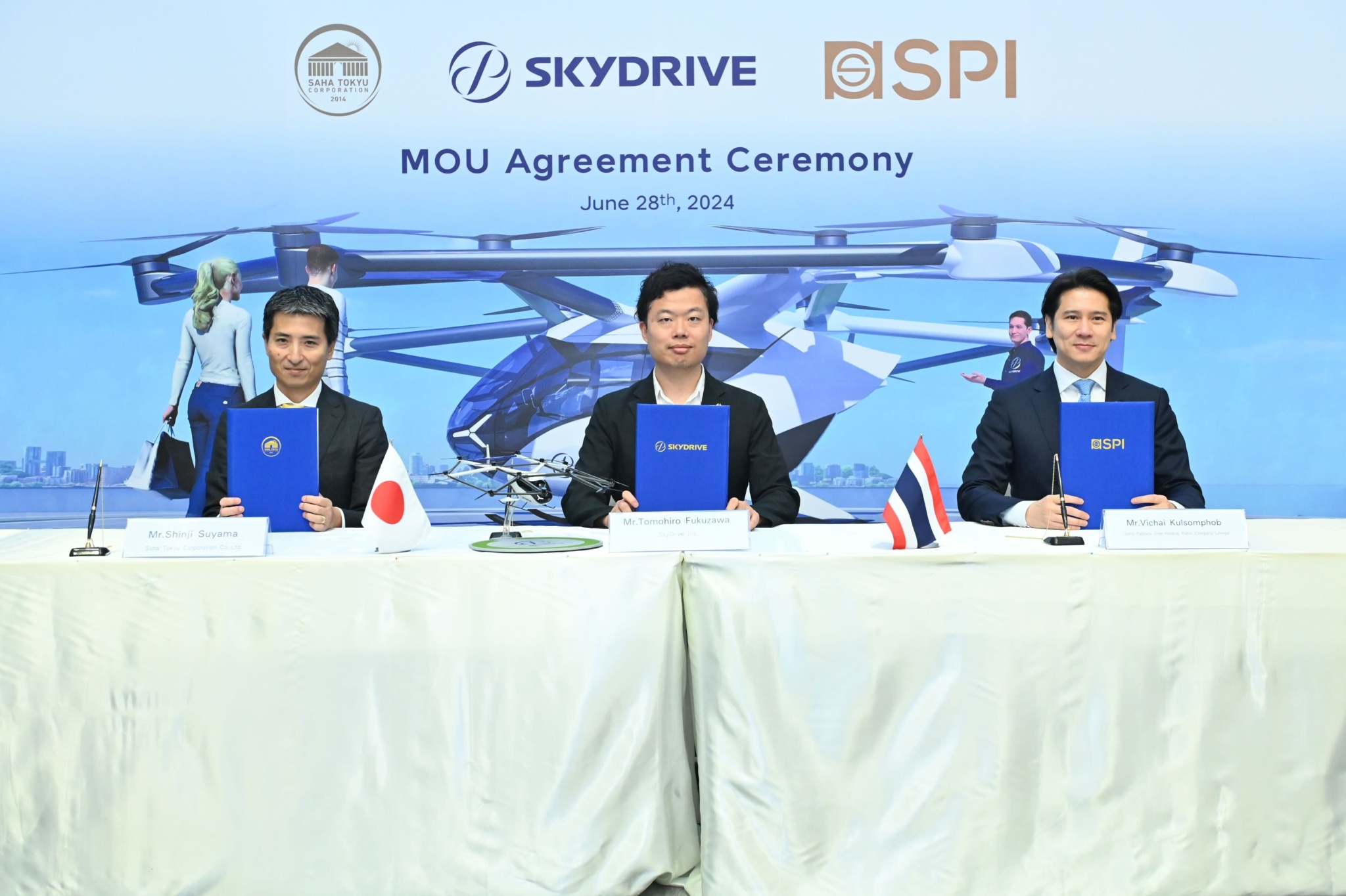 (Top image: From l to r, Shinji Suyama, MD of Saha Tokyu, Tomohiro Fukuzawa, CEO of SkyDrive, Vichai Kulsomphob, Chairman of SPI Executive Board)