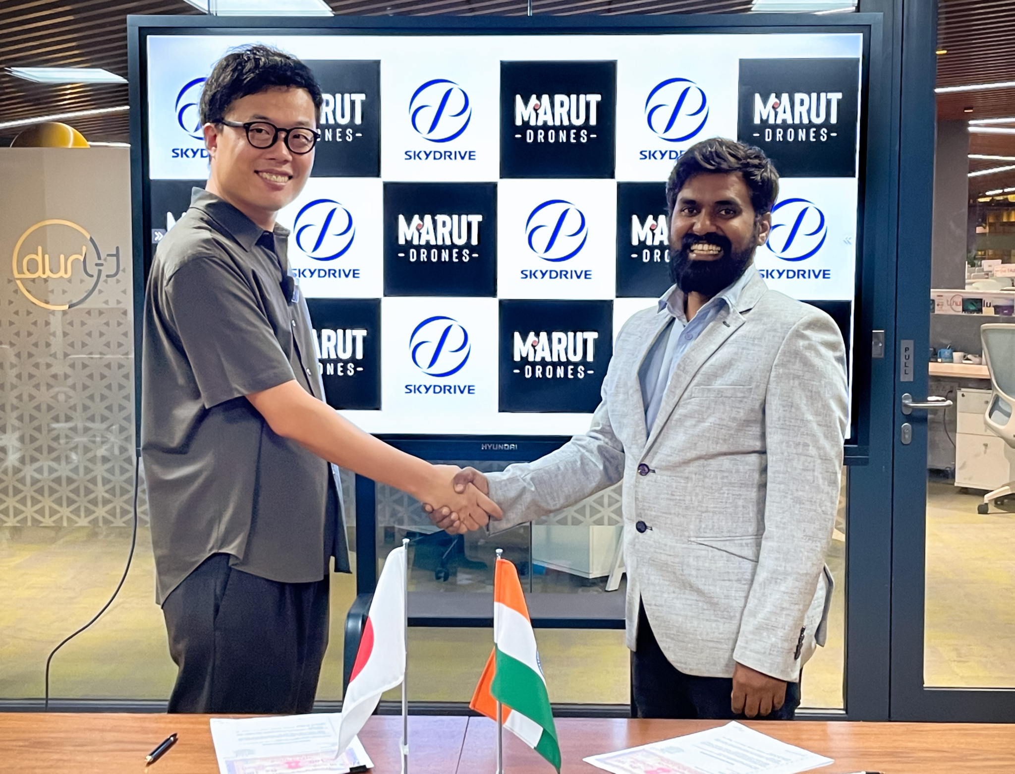 (Top image: SkyDrive CEO, Tomohiro Fukuzawa and Marut Drone Founder & CEO, Prem Kumar, at Signing Ceremony)