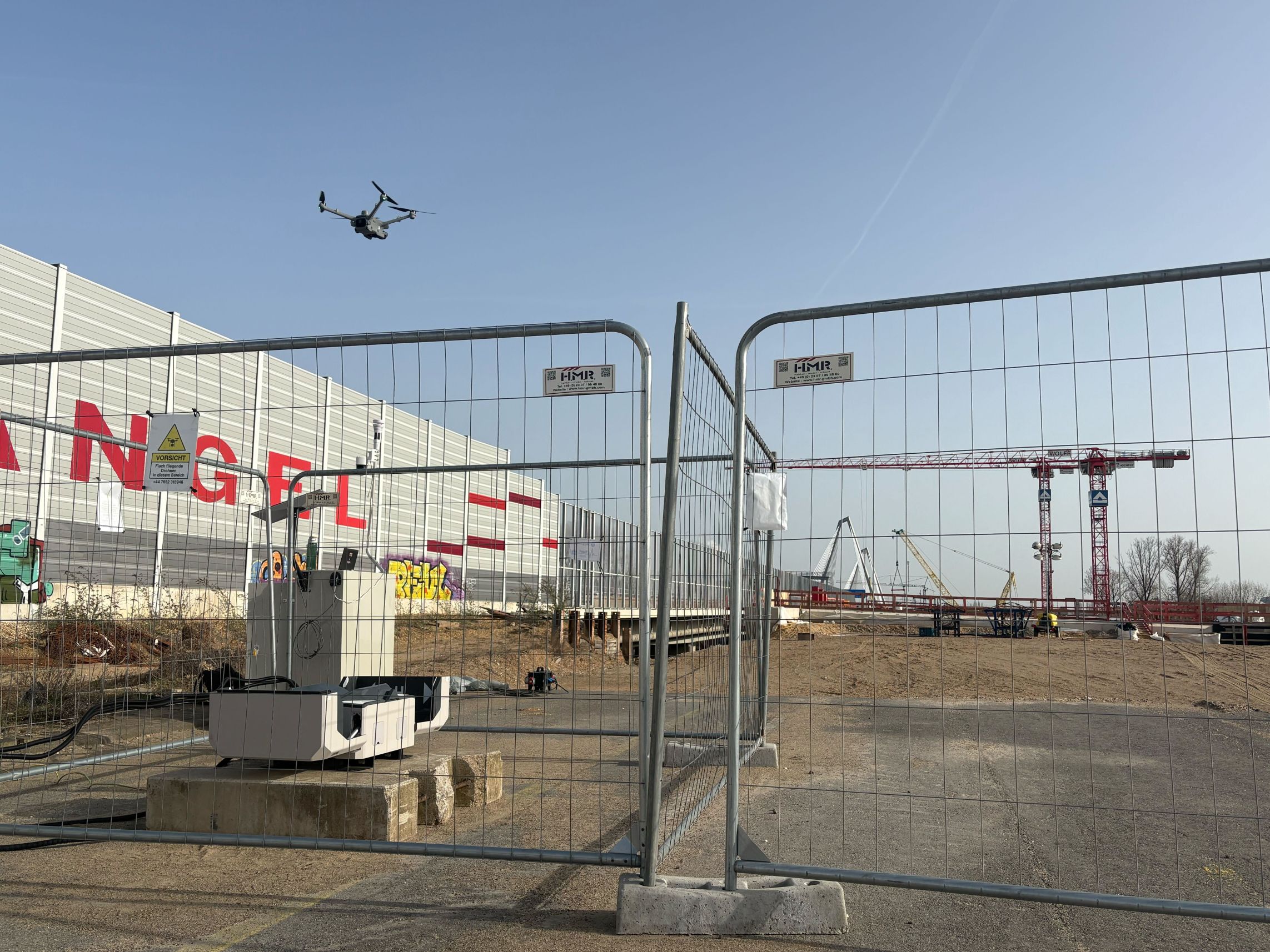 For the deployment Skyports has installed a fixed “drone-in-a-box” system at the construction site. Conducting weekly automated BVLOS drone surveys, the survey data collected helps HOCHTIEF to build a layered picture of how the build is progressing week on week.