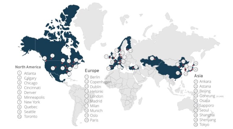 German based Unisphere has published its ‘Global Icing Report for Air Taxi Services’, examining 30 urban air mobility cities using the location of main train stations since they represent a connecting point for mobility.